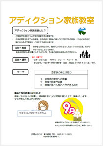 9月13日(土)10時よりアディクション家族教室を行います。